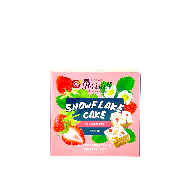 Une douceur venue de Taïwan qui fond dans la bouche ! Ce Snowflake Cake à la fraise est un délicieux mélange de guimauve moelleuse, de morceaux de fraise fruitée et de biscuits croquants, le tout dans une bouchée légère et fondante. Parfait pour accompagner un thé, pour offrir ou simplement pour se faire plaisir avec une touche sucrée et originale.