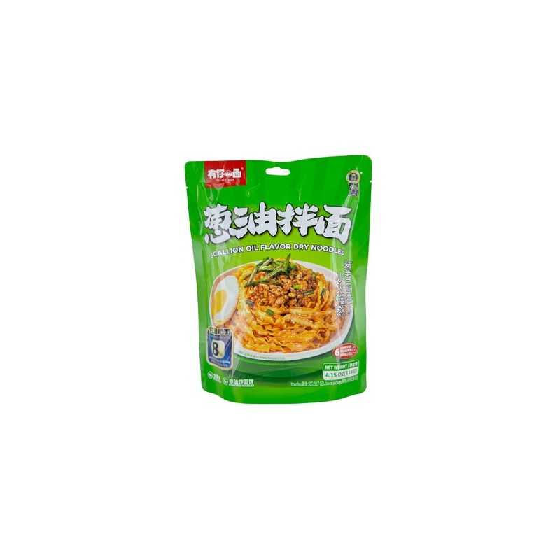 Ingrédients : Sachet de nouilles : Farine de blé, sel, eau. Valeur nutritionnelle (pour 100g) : Énergie 407 kcal, Matières grasses 15,3 g (dont saturées 1,7 g), Glucides 53,4 g (dont sucres < 1 g), Protéines 11,9 g, Sel 2,44 g. Sachet de la sauce à la ciboule : Sauce soja claire, eau, sauce soja foncée, sucre, levure en pâte, caramel, exhausteurs de goût (E621, E634), agent de texture (E415), colorant (E100i), sorbate de potassium. Sachet d’huile à la ciboule : Huile de soja, ciboule, arômes d’oignon, gingembre. Sachet d’échalote : Échalotes déshydratées. Savourez ces nouilles sèches chinoises parfumées à l’huile de ciboulette. Leur texture ferme et ondulée s’accompagne d’une sauce riche en goût, idéale pour les repas rapides et savoureux. Prêtes en 8 minutes, elles se dégustent chaudes, seules ou accompagnées de légumes et viande.